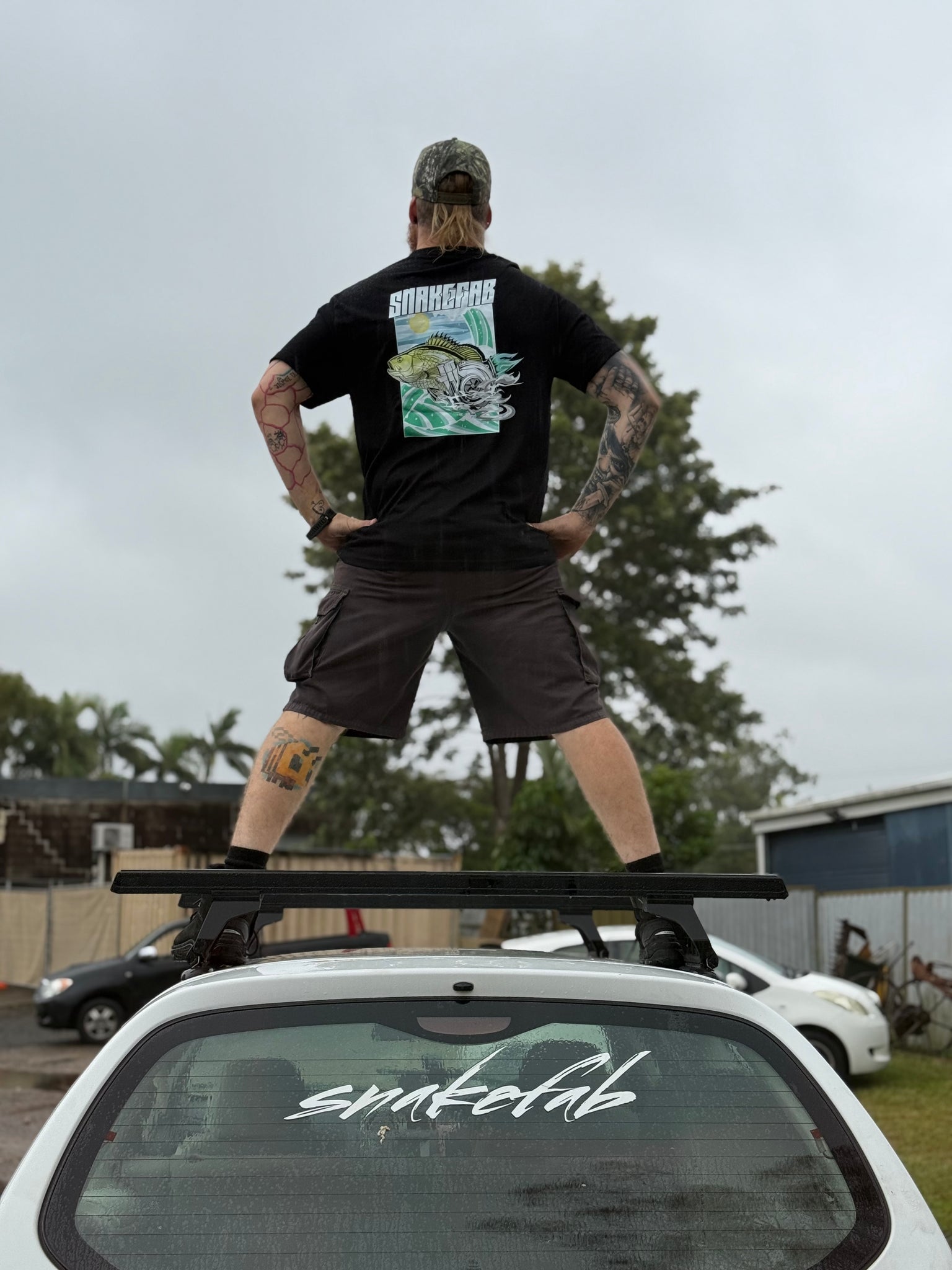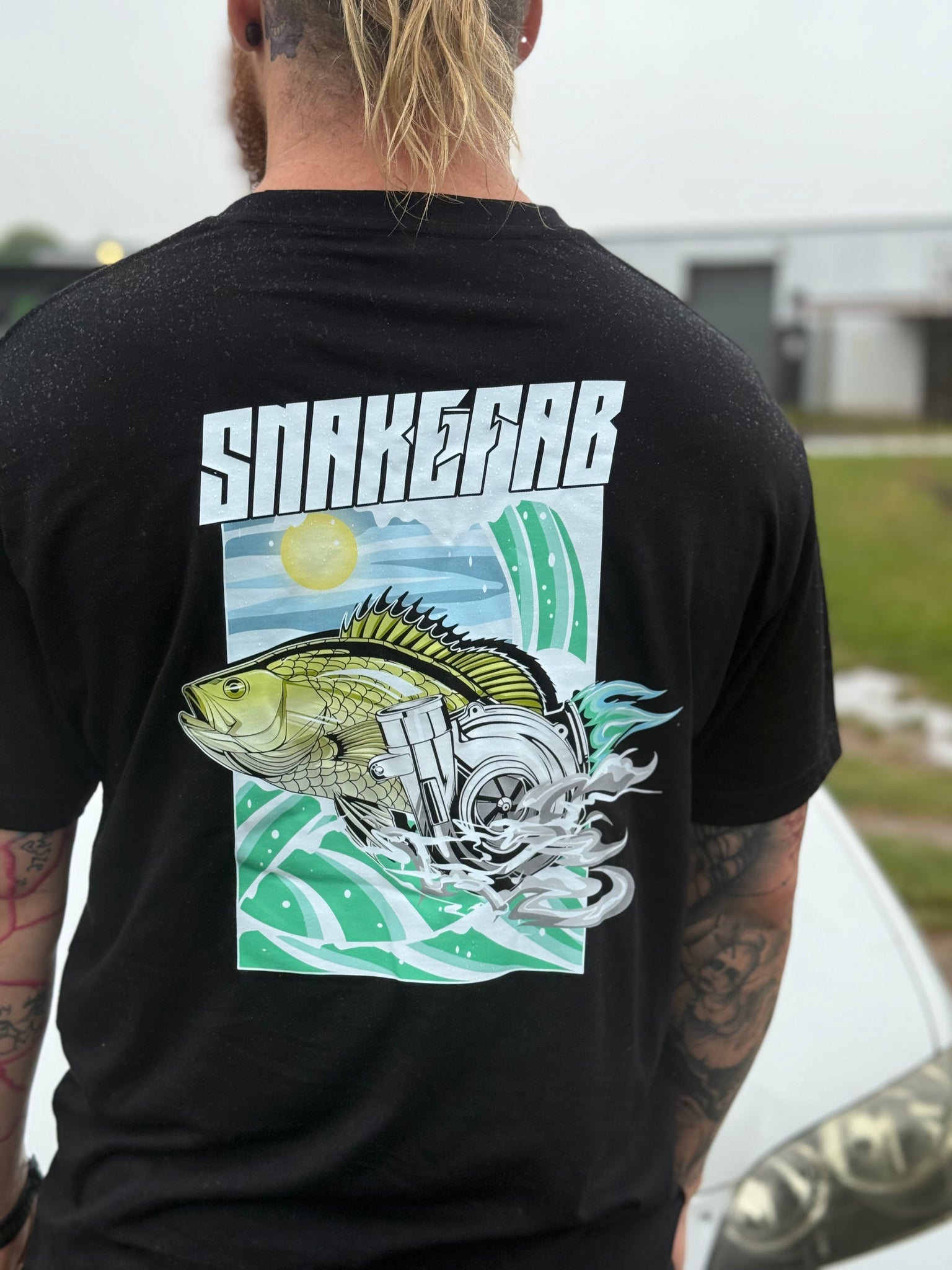 The mighty turbo barra, on a shirt! This one doesn’t make 500hp but it looks pretty fast! A note on sizing - if you’re usually in between sizes choose the smaller size as they run a tad larger.